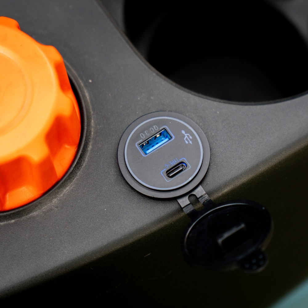 พอร์ต USB คู่ (Type-A & Type-C): อุปกรณ์ชาร์จระหว่างการเดินทางพร้อมเอาต์พุต 5V