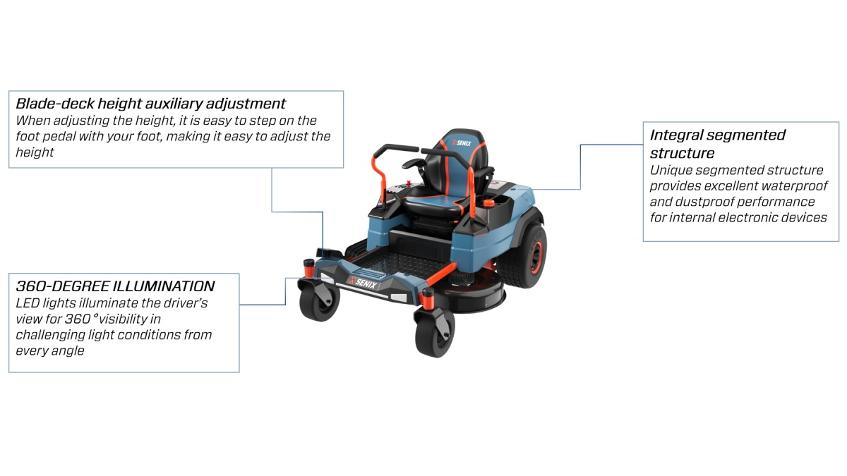 ระบบแบตเตอรี่สูงสุด 60V ของเครื่องตัดหญ้าช่วยลดความต้องการก๊าซซึ่งนำเสนอการทำงานที่เป็นมิตรกับสิ่งแวดล้อมโดยไม่มีการปล่อยมลพิษและลดเสียงรบกวน ด้วยการรองรับแบตเตอรี่ 12AH มากถึงหกแบตเตอรี่ทำให้มั่นใจได้ว่ารันไทม์ขยายเวลาสำหรับการตัดหญ้าอย่างต่อเนื่อง โหมดพวงมาลัยแบบเทิร์นเทิร์นเทิร์นและเทอร์โบ (สูงถึง 12.8 กม. / ชม. / 8 ไมล์ต่อชั่วโมง) ช่วยให้ผู้ใช้สามารถจัดการกับสนามหญ้ากว้างใหญ่ได้อย่างรวดเร็วในขณะที่ยังคงความคล่องตัวรอบอุปสรรค