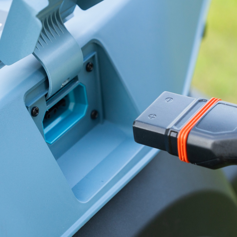 ระบบแบตเตอรี่ 60V แบบแยกส่วน: รองรับแบตเตอรี่ 12AH ได้สูงสุดหกก้อน (เป็นทางเลือก) สำหรับการใช้งานขยายเวลาครอบคลุม 12,140 ตารางเมตร (3 เอเคอร์) ในการชาร์จเดียว