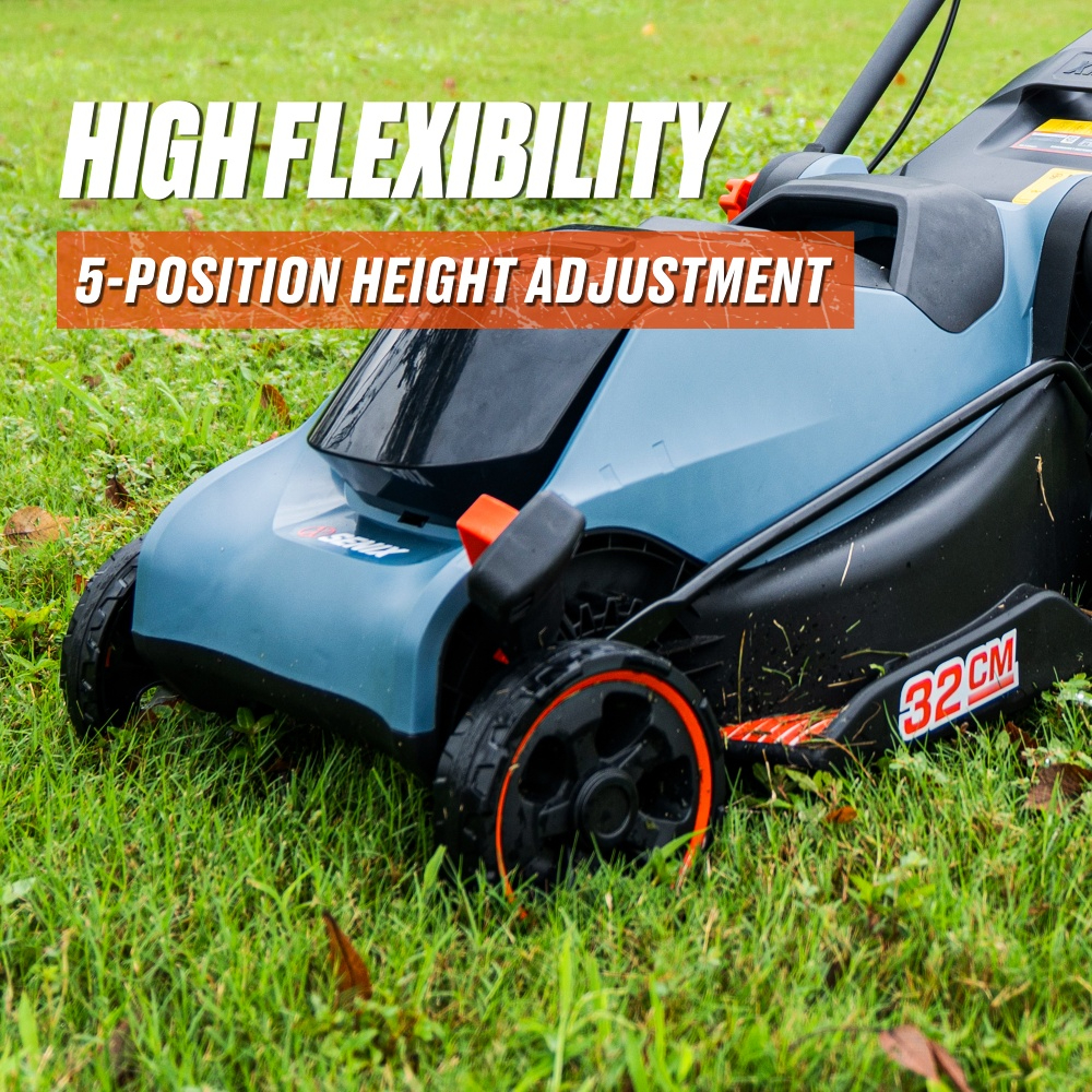 (5.0)เครื่องตัดหญ้า Senix 20V Cordless 32 ซม. ให้การดูแลสนามหญ้าที่มีประสิทธิภาพไม่ยุ่งยากพร้อมความกว้างการตัด 32 ซม. และแบตเตอรี่ 4.0AH การตัดหญ้า 2-in-1 การตัดความสูง 5 ตำแหน่งที่ปรับได้และถุงหญ้า 30 ลิตรทำให้เหมาะสำหรับสนามหญ้าสูงถึง 150 ตารางเมตร น้ำหนักเบาตามหลักสรีรศาสตร์และง่ายต่อการจัดเก็บมันให้การตัดแต่งที่แม่นยำสำหรับสวนขนาดเล็กถึงขนาดกลาง