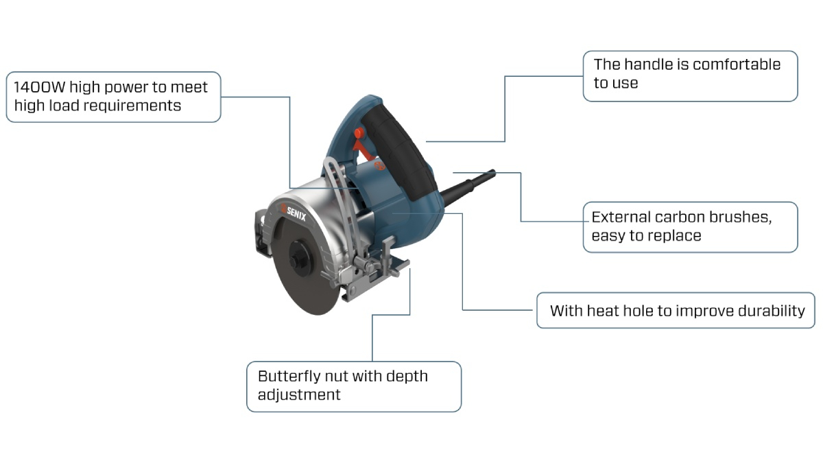 มอเตอร์พลังงานสูง: มอเตอร์ 1500W พร้อม 14,000 รอบต่อนาทีสำหรับการตัดหินอ่อนที่รวดเร็วและมีประสิทธิภาพ